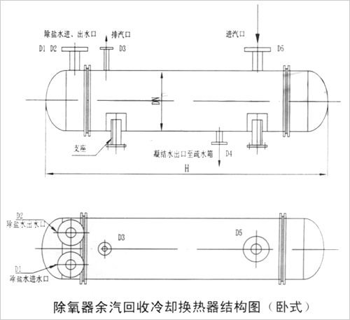 除氧器除鹽水(軟化水)以及排汽進入回收裝置,該裝置是采用表面式加熱器,是通過金屬受熱面將加熱蒸汽的熱量傳給管束內(nèi)被加熱的水,使除熱水水溫升高,達到余汽回收利用的作用。